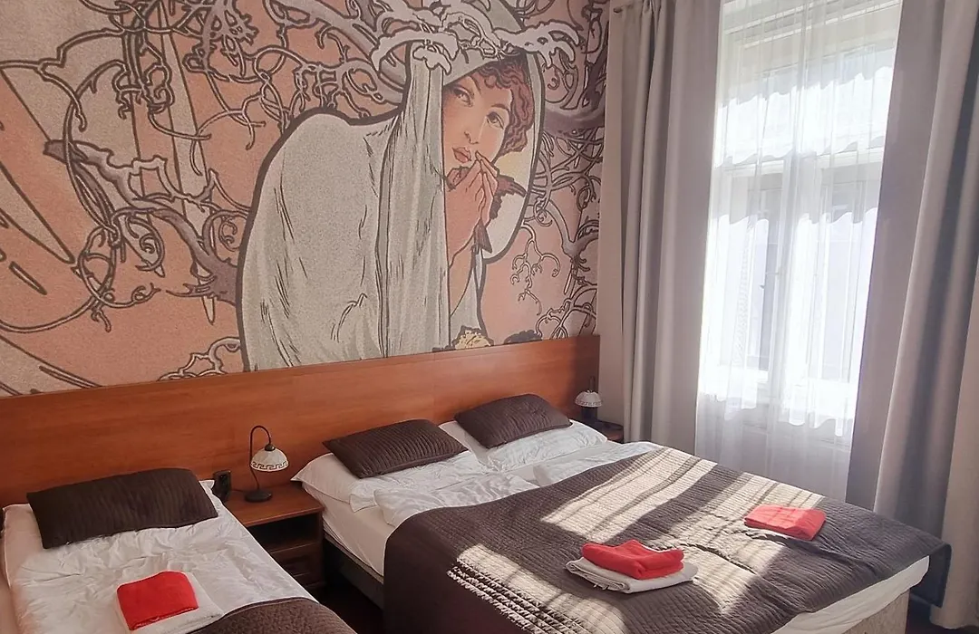 Cet hôtel silencieux se trouve dans un endroit parfait. Des chambres très propres avec des chaînes câblées, un coin salon et un bureau. Il y avait Potrefena Husa, à 5 minutes de marche maximum, on a vraiment apprécié ses repas.